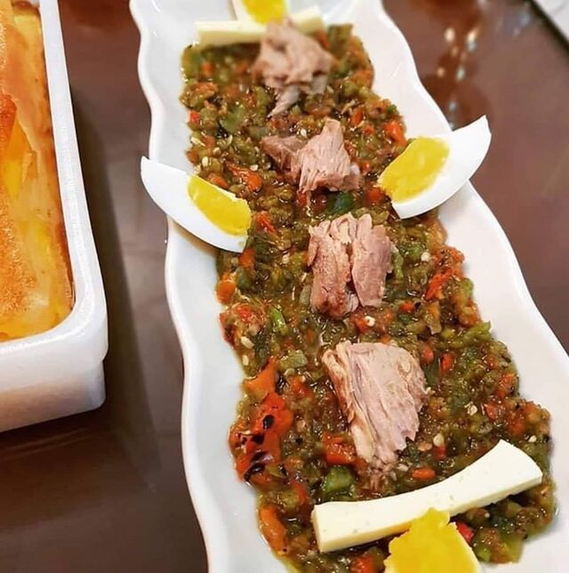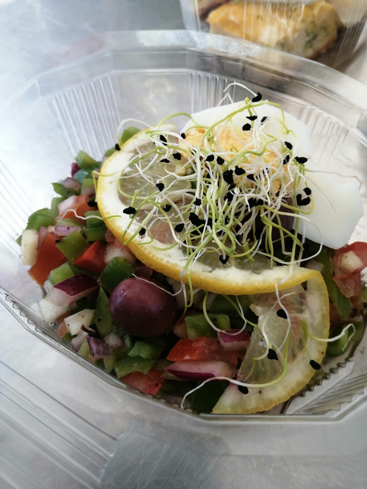 * Salade tunisienne (tomate, oignon, pomme, poivron vert et jus de citron frais)