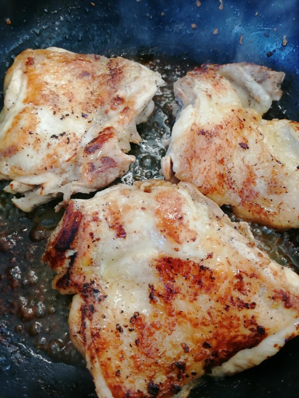 * Tajine marocain aux cuisses de poulet et fruits secs (bananes, abricots, amandes et prunes)